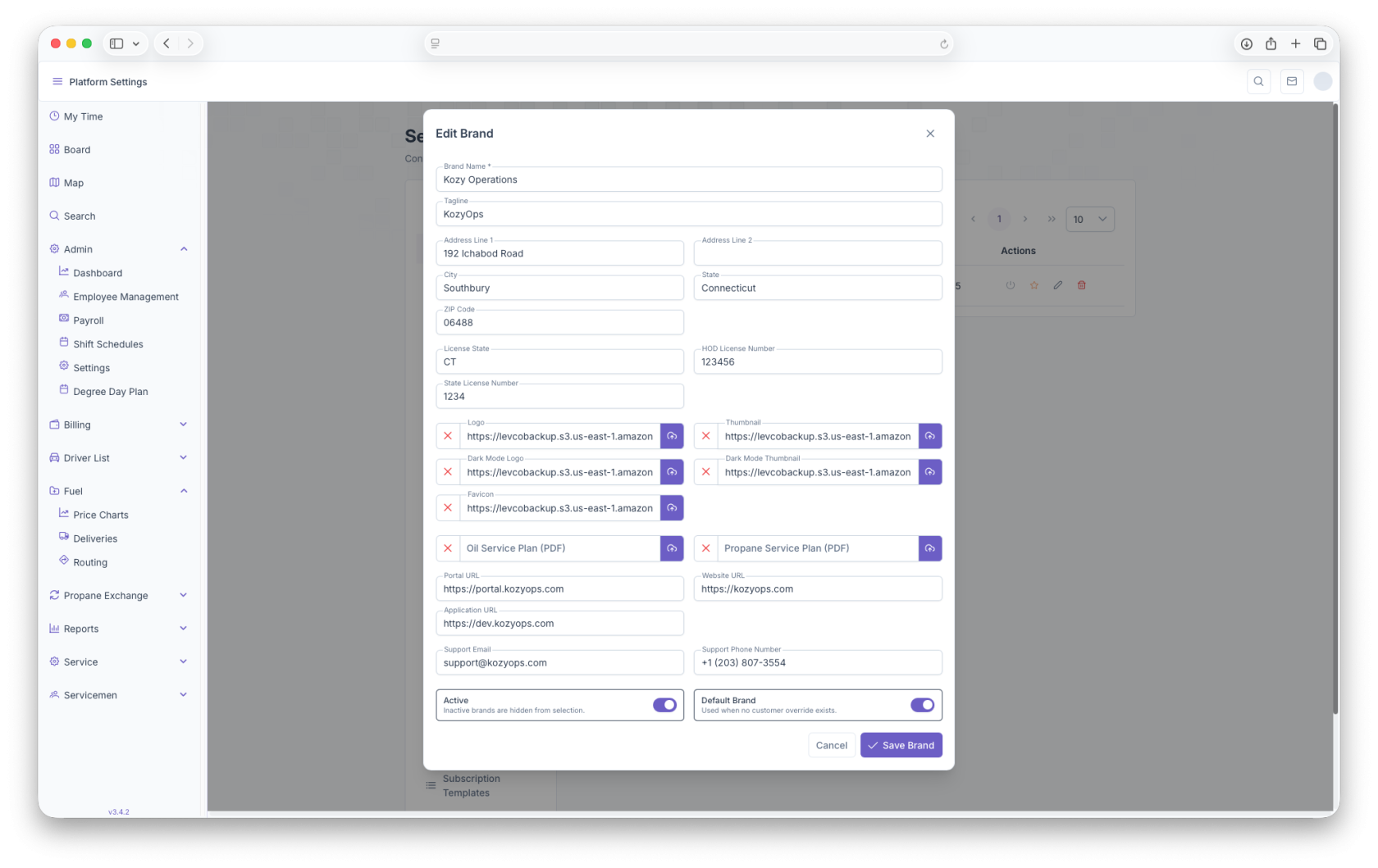 - Can toggle wether Active/Inactive and if it's the Default Brand or not