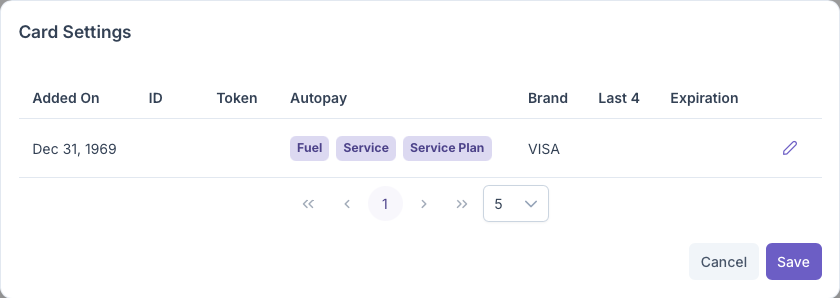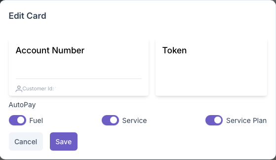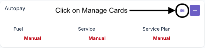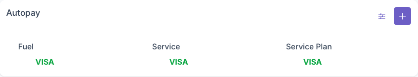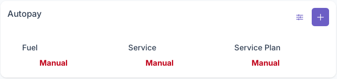 - Autopay - Here is where autopay can be edited for the card by toggling autopay on or off for each service: Fuel, Service and Service Plan