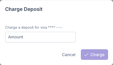 - Actions - Can charge a deposit by clicking under Actions, for more information, see below