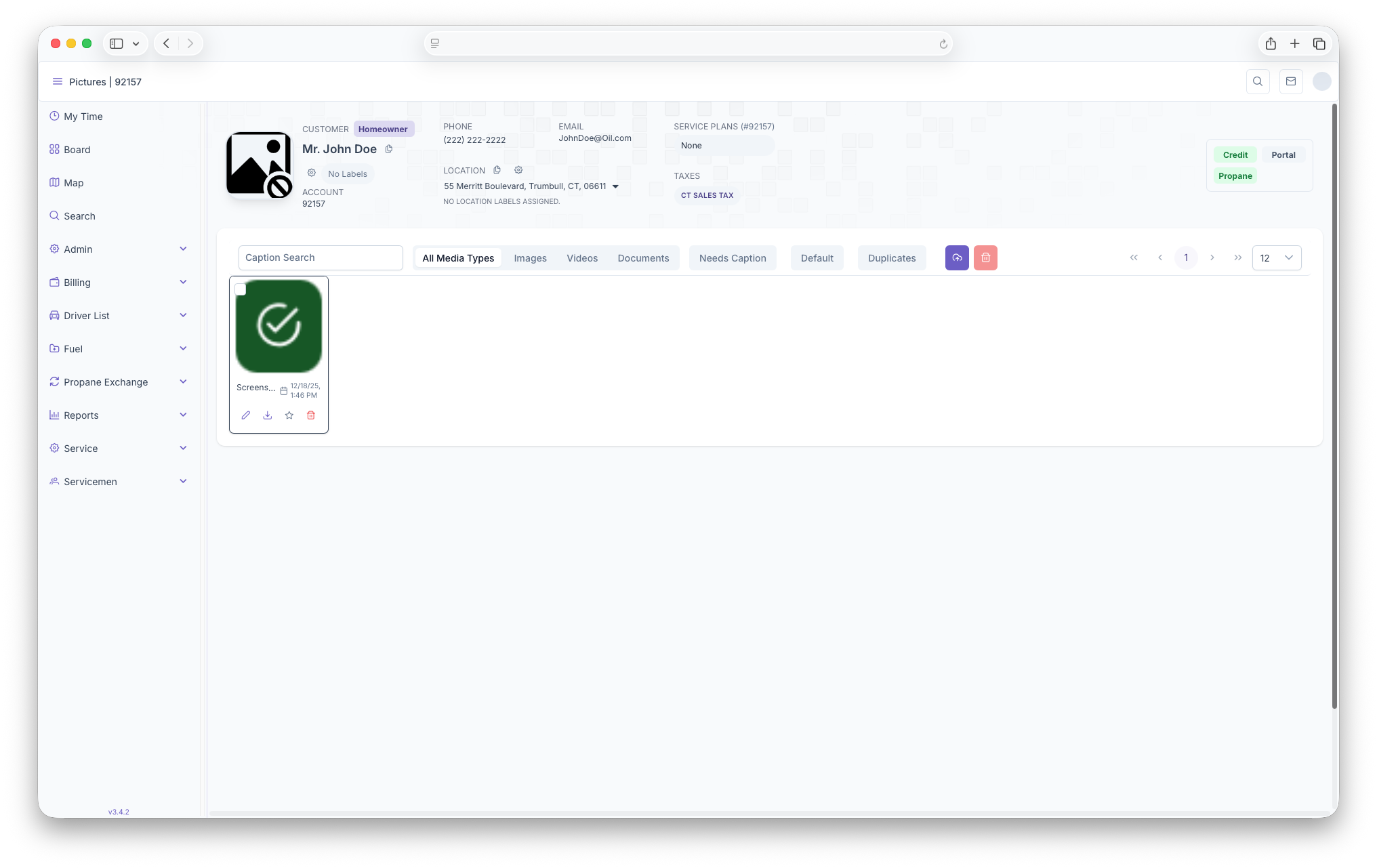 Clicking on the Customers Profile Picture allows images, videos and or documents to be uploaded to the customers account. Note that anything uploaded is tied to the selected address of the customer and will change when selecting a new address.