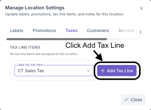 - Click Add Tax Line to add tax to address