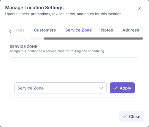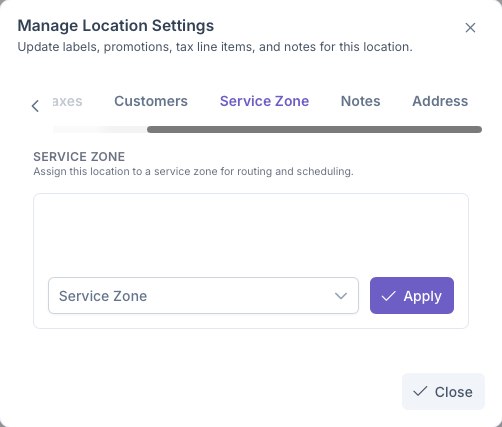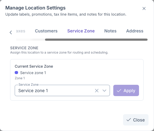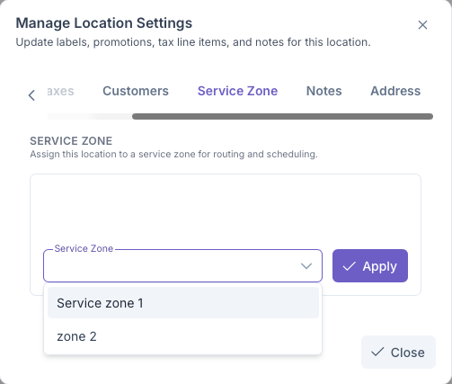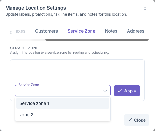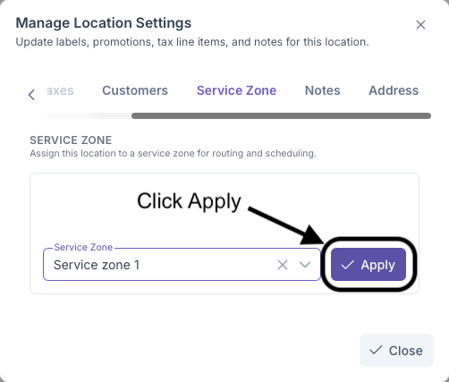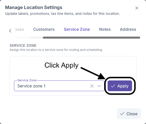 - Click Apply to add zone to Customer Location