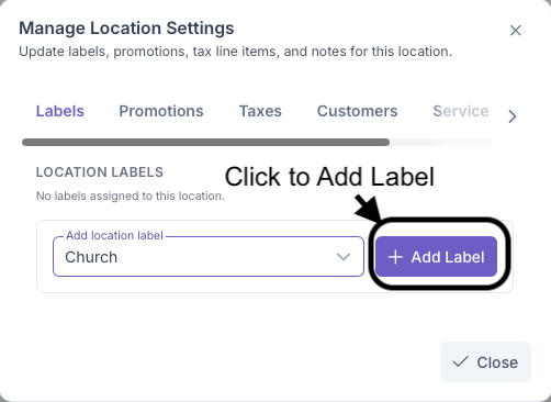 - Click on Add Label to add label to the location