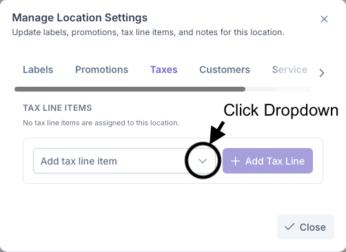 - Click on the Add Tax line Item Dropdown