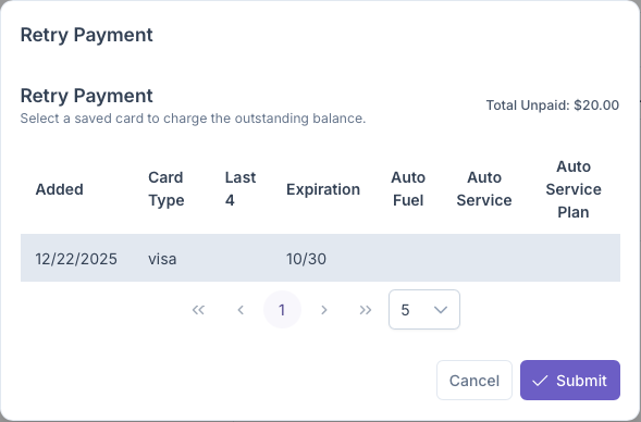- If the card is aset up for auto-pay with the following - Fuel, Service and/or Service Plan