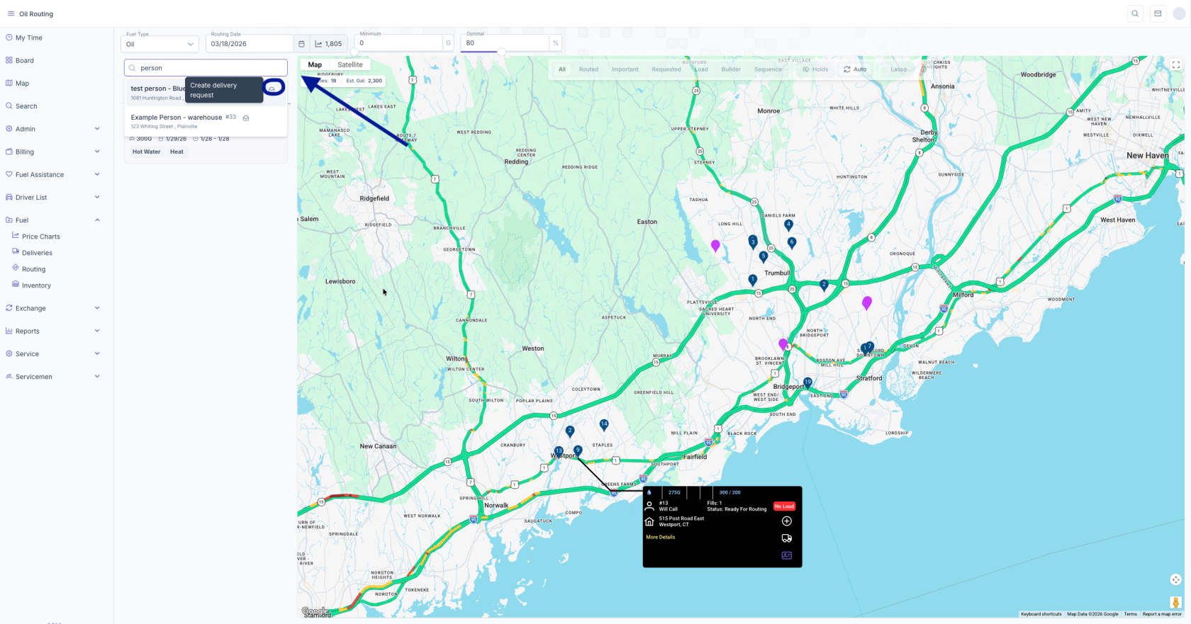 Add Delivery Request from Fuel Map