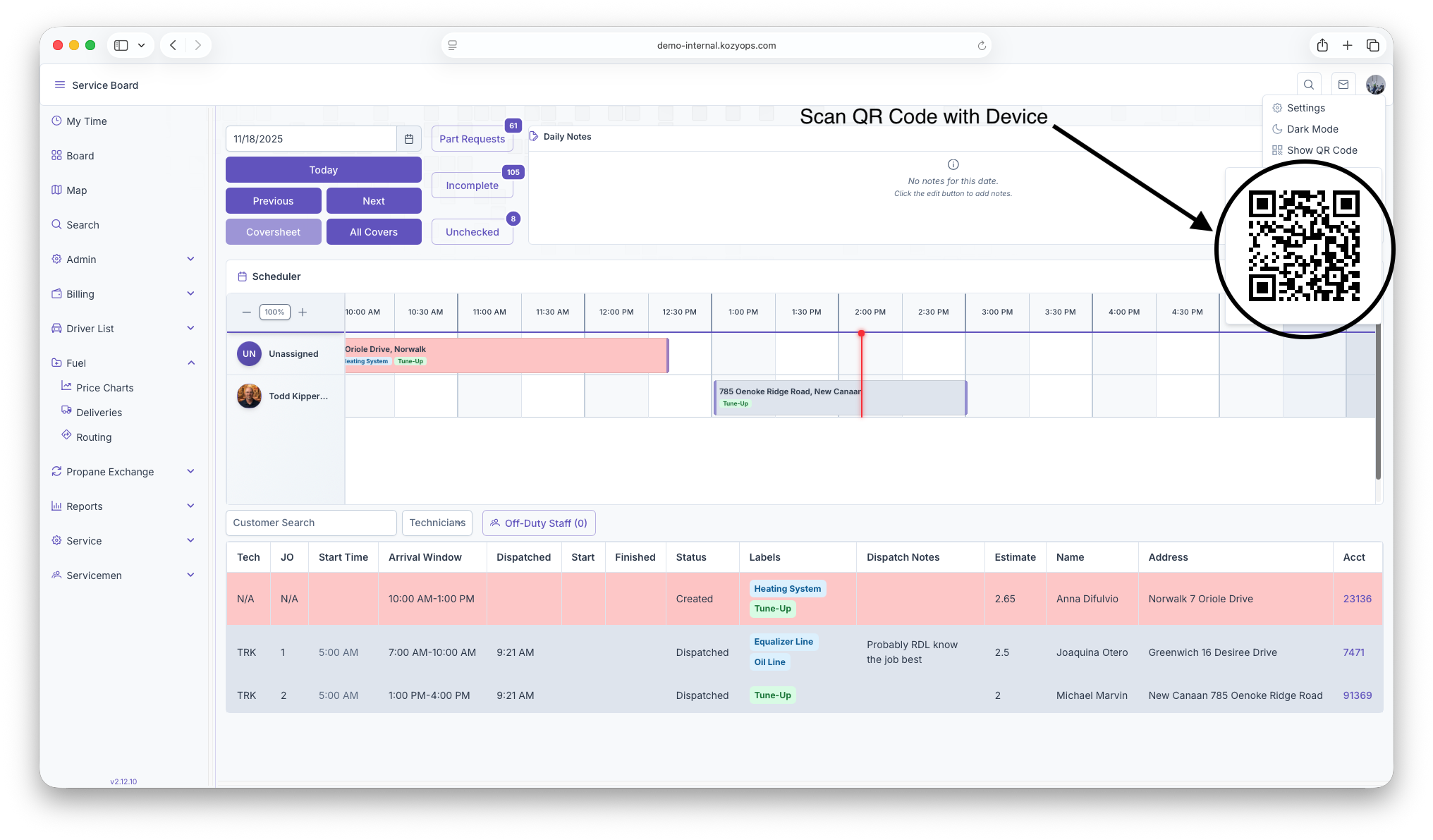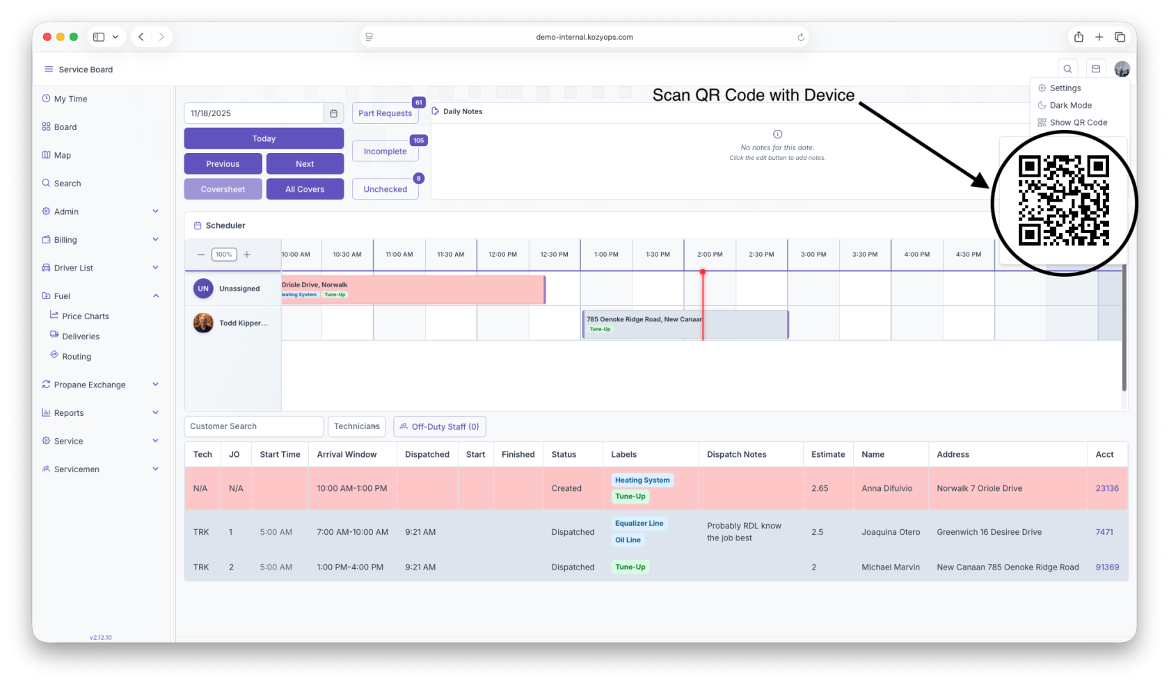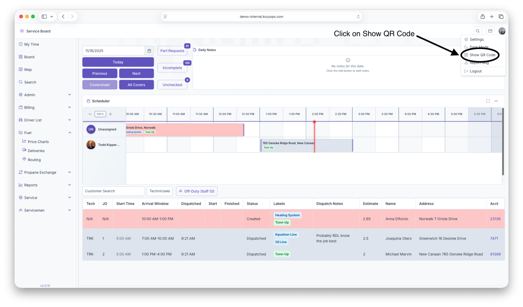 Instructions on how to acces QR Code if not provided by Company or Dispatcher