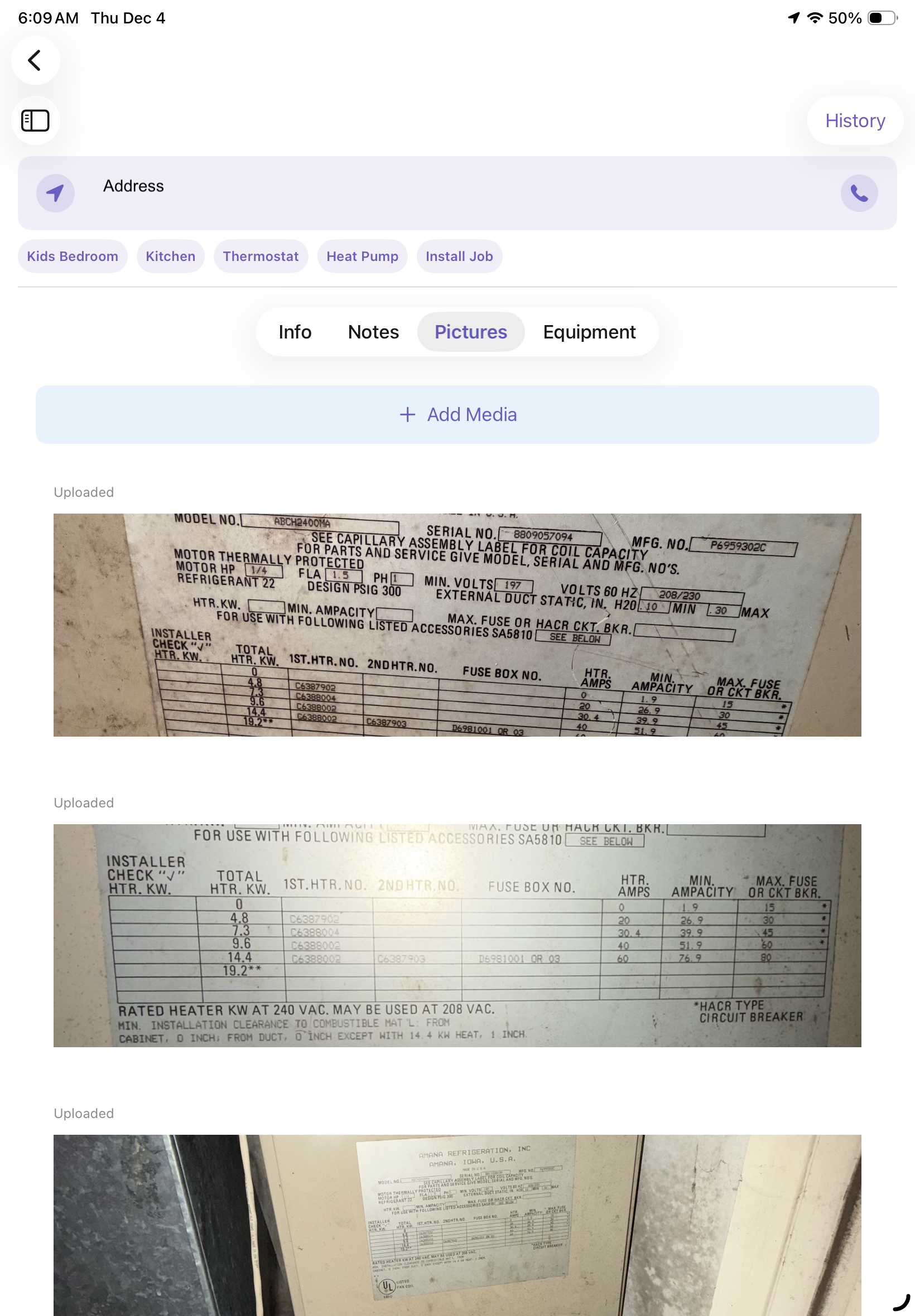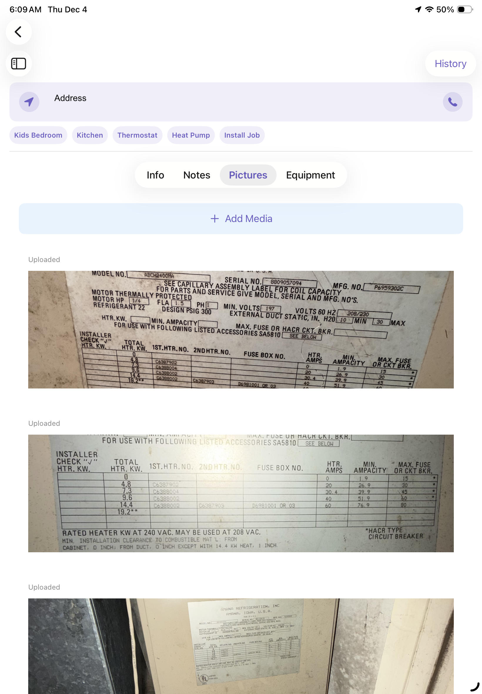 tap over to the pictures page and add any pictures of problems and any work that was completed.