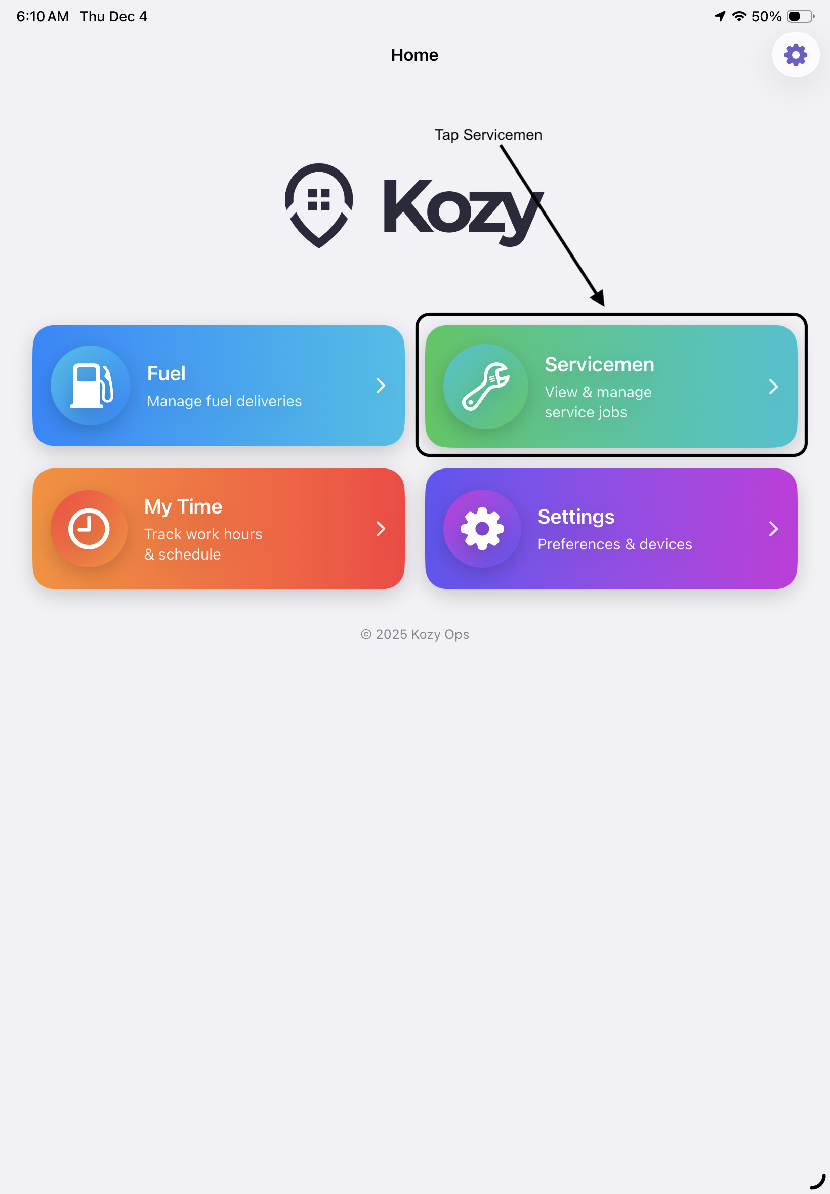 When on the main menu, tap on servicemen to bring up all orders associated with the tech.