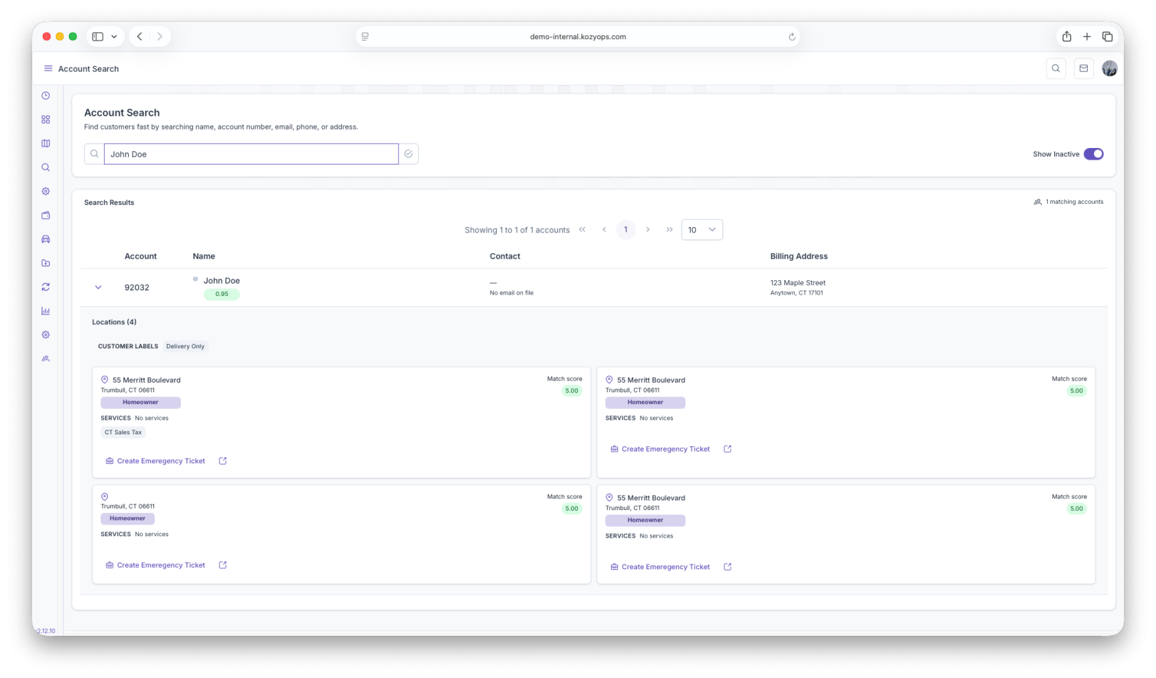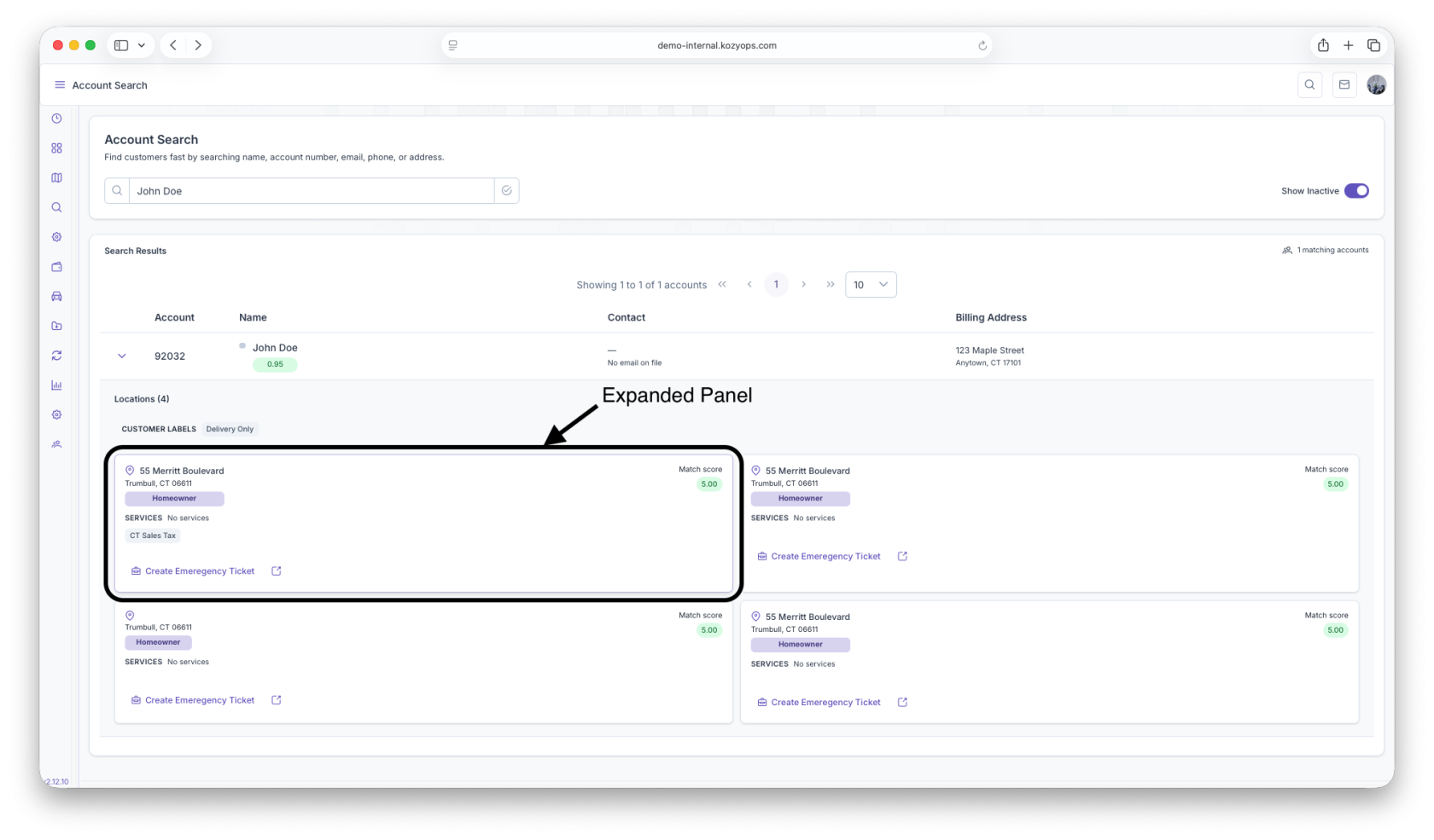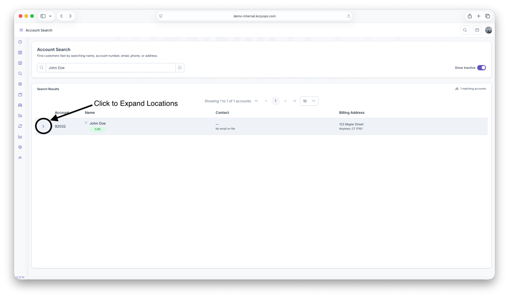 - Expand accounts to view location-level service details before opening the full record.