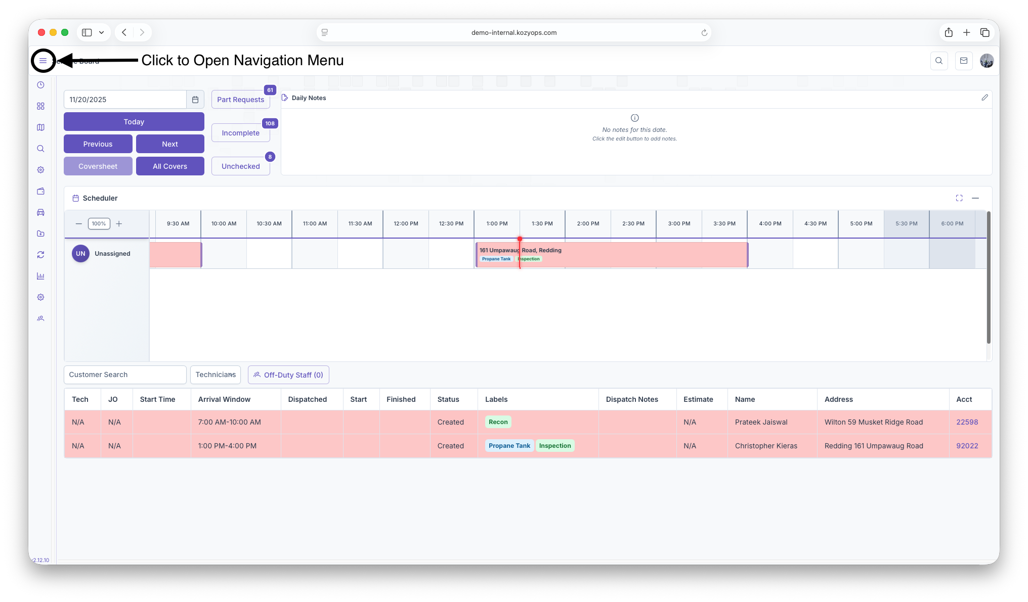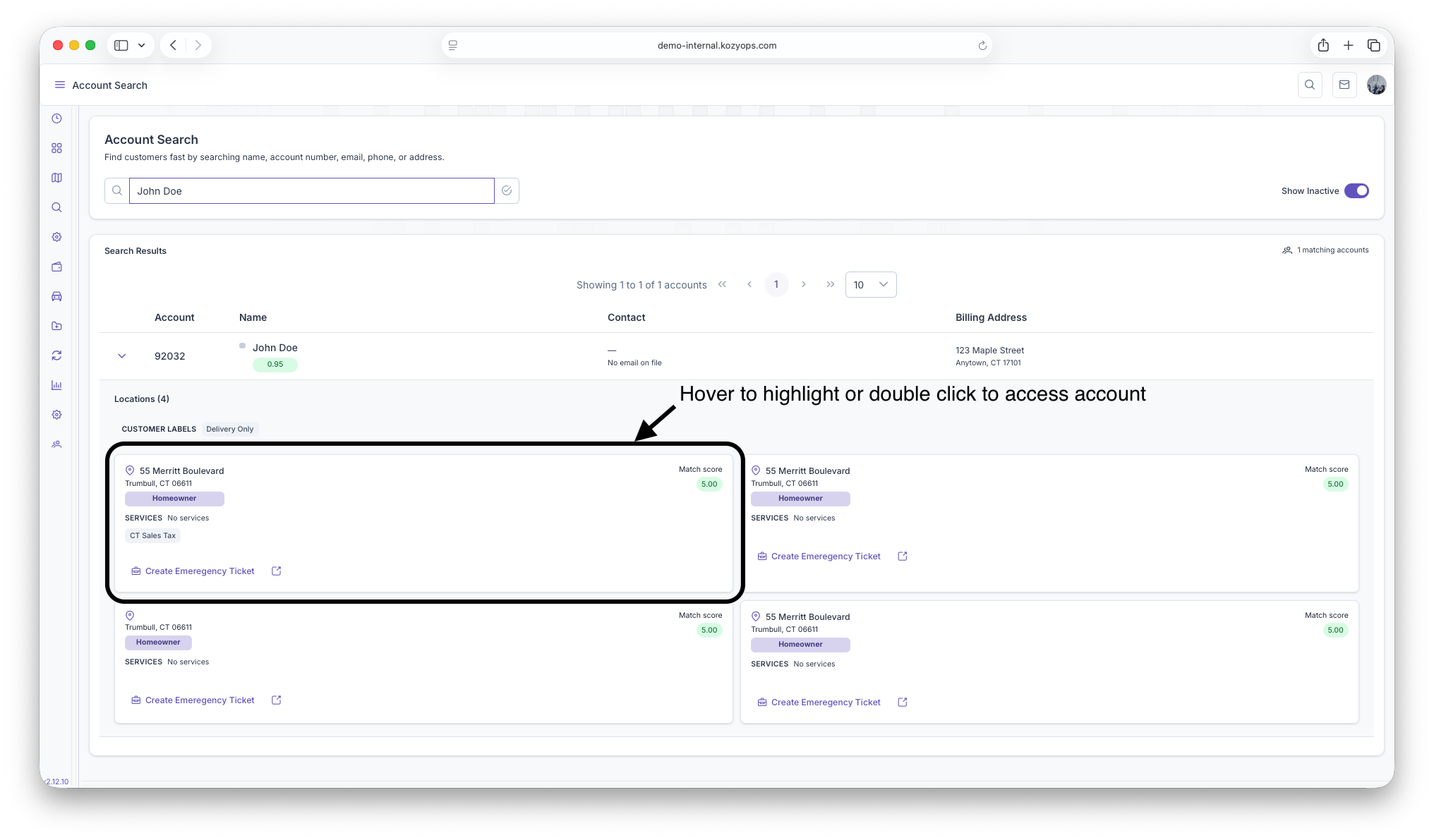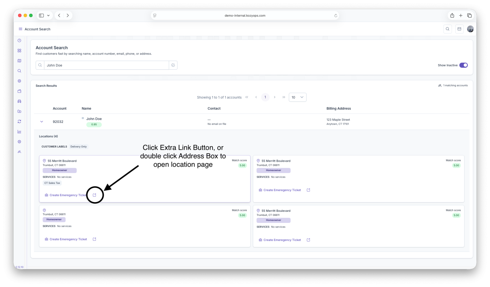 - Expand accounts to view location-level service details before opening the full record.